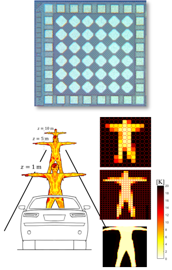 The research activity aims at developing THz integrated arrays using SiGe BiCMOS that can be used for imaging applications. The THz sensing group has recently developed receiving antenna arrays with sufficient sensitivity for thermal imaging.